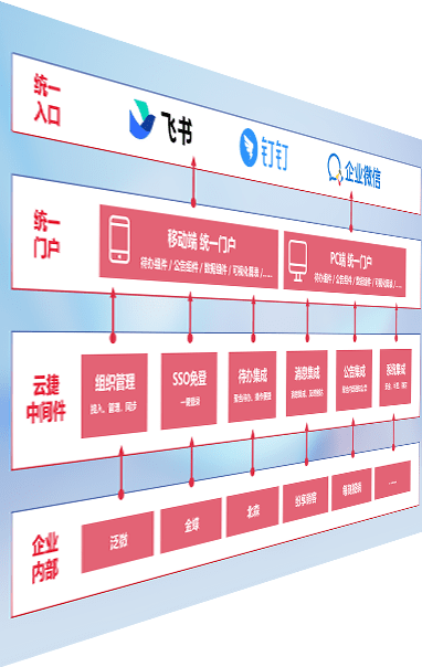 对协作平台提供支持服务,,,,支持企业应用与协作平台对接,,,包含组织同步、、、、消息集成、、、待办集成等。。。支持目前主流的协作平台:钉钉、、企微和飞书。。。。